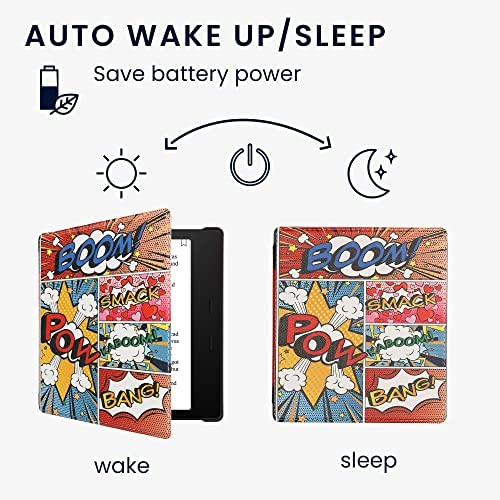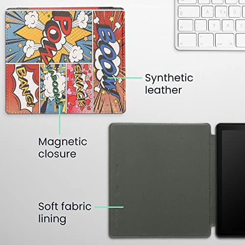 kwmobile Case Compatible with Amazon Kindle Oasis 10. Generation – Case PU e-Reader Cover – Comic Book Symbols Multicolor