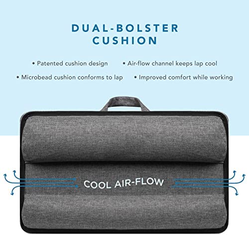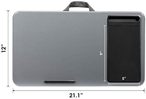 Step away from the traditional desk and experience the home office Lap Desk. The 21.1″X 12″ Work surface Fits most 15.6″ Laptops and includes a device ledge to secure your laptop in place. With the built-in mouse pad and phone slot, The home office Lap Desk is designed to make work feel effortless. The innovative Dual-bolster cushions not only create a stable work surface, but also reduce heat in your lap.