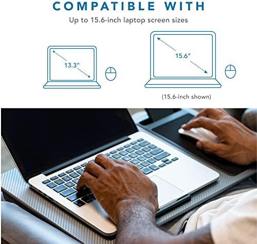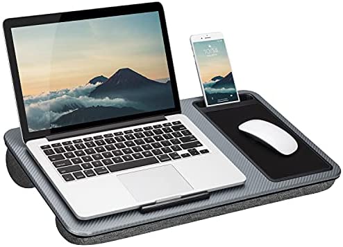 LapGear Home Office Lap Desk with Device Ledge, Mouse Pad, and Phone Holder – Silver Carbon – Fits Up to 15.6 Inch Laptops – Style No. 91585
