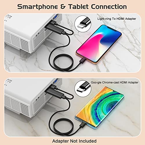 Latest Upgrade 7500Lumens Mini Projector for Outdoor Movies, Full HD 1080P 170″ Display Supported, PS4,TV Stick, Smartphone, USB, SD Card Supported