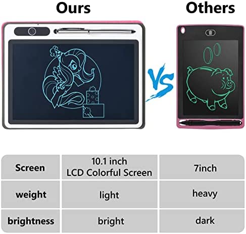 LCD Writing Tablet with Leather Cover: Adopted the newest flexible liquid crystal technology, the 10.1 inch colorful screen is brighter and clearer than most LCD writing tablet. It comes with a non-detachable leather cover, which can not only protect the pad from accidentally dropping, colliding or scratching, but make it more portable when going to work, school or trip.