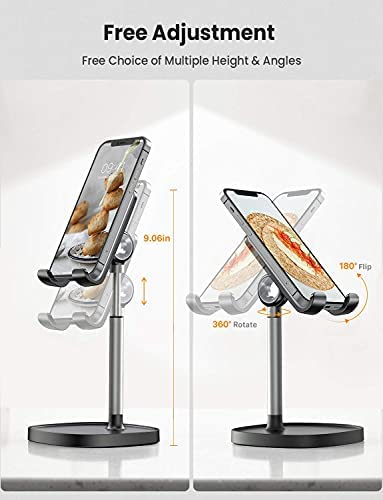 WEIGHTED ANTI-SLIP BASE: This cell phone stand for desk is equipped with a weighted base and an aluminum alloy rod. Therefore, this iPhone stand holder is stable enough to support all smartphones or small tablets, such as 2021 iPad Mini, iPhone 13 Pro/13 Mini/12/12 Pro/12 Pro Max/12 Mini/iPhone 11/11 Pro/Max/X/MAX/XR/8/8P, Samsung Galaxy S21, S20, Note 10/9/8/Plus, S10/S9/S8, Kindel, Switch, iPad Mini,iPad Air, etc.We recommend the most stable compatible device size is 4-10 inchs