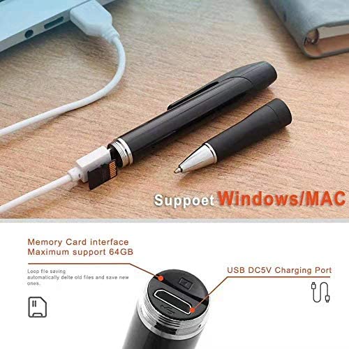 Hidden Audio Camera Warranty: All mini spy camera pens have a 30-day refund, a 365-day warranty and lifetime technical support. If you encounter any problems when using our small security camera, please feel free to contact us via Amazon or send us an email. We will reply to you within 24 hours and try our best to provide you 100% satisfactory shopping experience.