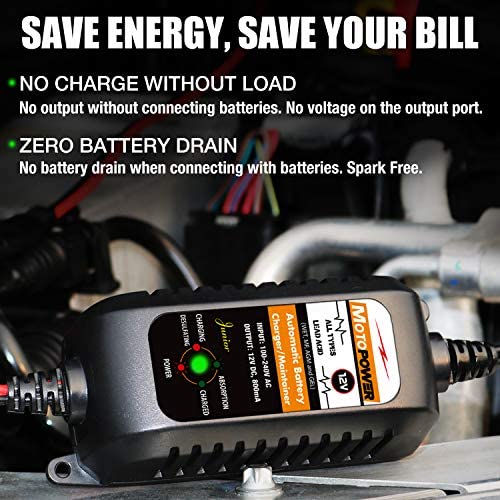 MOTOPOWER MP00205A 12V 800mA Automatic Battery Charger, Battery Maintainer, Trickle Charger, and Battery Desulfator