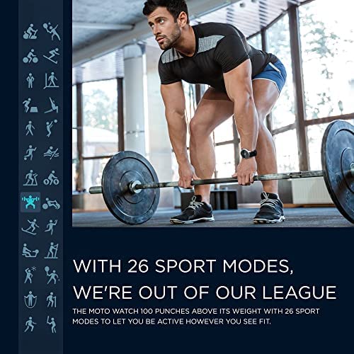 FEEL YOUR RHYTHM: Notifications, reminders, dynamic health tracking features and more than 26 sport modes help you establish routines and get more from your grind. The Moto 100 is a comfortable addition to your wrist that helps you unlock your potential!
