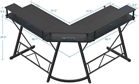 Additional Desk Accessories: Our l shaped gaming computer desk has a built-in power socket with 3 outlets & 2 USB ports, making it easy to charge your computer, smartphone, or gaming gear. The position of the headphone hook and cup holder can be switched easily. The ergonomic monitor stand can help you arrange your workspace while keeping your screen at eye level.