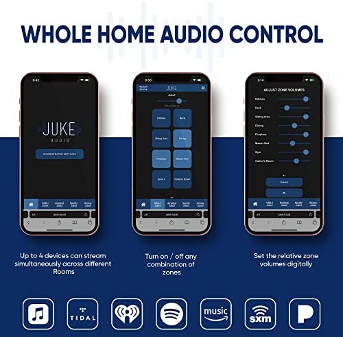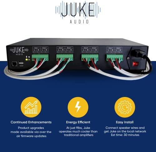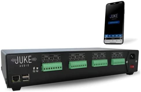Includes a Juke-8 8-zone amplifier, speaker connectors, 6′ power cord and 5′ Ethernet cable