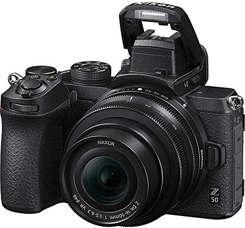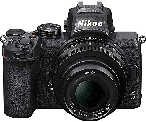 Nikon Z 50 20.9MP DX-format Mirrorless Camera Body w/ NIKKOR Z DX 16-50mm f/3.5-6.3 VR LensTiny has never been a bigger deal.Meet the Z series mirrorless camera for the rest of us. Insanely small. Tough. Dead simple to use. Connected to your phone. Ready to transform you into a pro-caliber creator. Your followers won’t know what hit ’em.Technology Features:20.9 Megapixel DX-Format CMOS Image SensorBased on the sensor design from the award-winning D500, previously considered by many to be the best DX DSLR in Nikon’s history, this remarkable new Z series sensor captures staggering detail, even in challenging light.Built-in Wi-Fi and BluetoothZ 50 has built-in Wi-Fi and Bluetooth and works seamlessly with a compatible smart device using Nikon’s SnapBridge app. Instantly transfer photos and videos right to your smart device, or use it for remote shooting-see what the camera sees, adjust settings and control the shutter or start/stop video recording.209-Point Hybrid Autofocus209 focus points and focal-plane phase-detection pixels are incorporated right into the image sensor for extraordinary AF performance during both still and video recording.Eye Detection AutofocusZ 50’s sophisticated facial recognition algorithm precisely locks focus onto your subjects eye to ensure tack-sharp results, even when your subject is in motion.Native ISO 100–51,200Z 50 shines in low light. Shoot stills up to ISO 51,200 with virtually no noise-great for low-light indoor shots or outdoor…