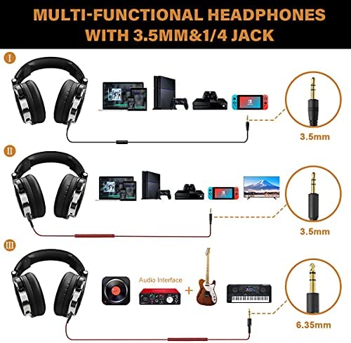OneOdio Wired Over Ear Headphones Studio Monitor & Mixing DJ Stereo Headsets with 50mm Neodymium Drivers and 1/4 to 3.5mm Audio Jack for AMP Computer Recording Phone Piano Guitar Laptop – Black