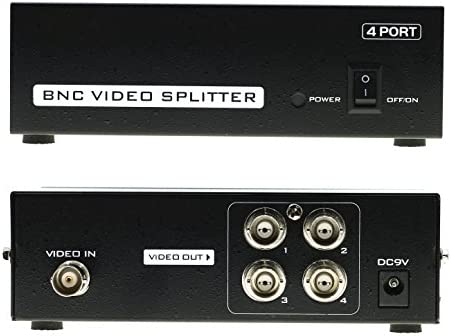 This 4 Port BNC Splitter the 4 Way Splitter receives one BNC input and retransmits the signal to four BNC outputs for real time viewing across multiple displays.