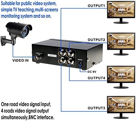 It’s particularly ideal for surveillance systems,TV studio, digital cinema, or any AV application where you need to split signals from a camera or other device equipped with BNC outputs to four BNC-compliant displays or video processors.