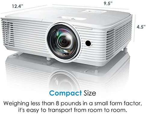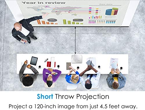 Short throw lens: experience a large 120″ Image projected from 4. 5 feet away, at throw ratio 0. 5: 1; short throw Projectors allow placement closer to the screen making it ideal for more smaller spaces and easier installation