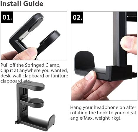 PC Gaming Headset Headphone Hook Holder Hanger Mount, Headphones Stand with Adjustable & Rotating Arm Clamp , Under Desk Design , Universal Fit , Built in Cable Clip Organizer EURPMASK