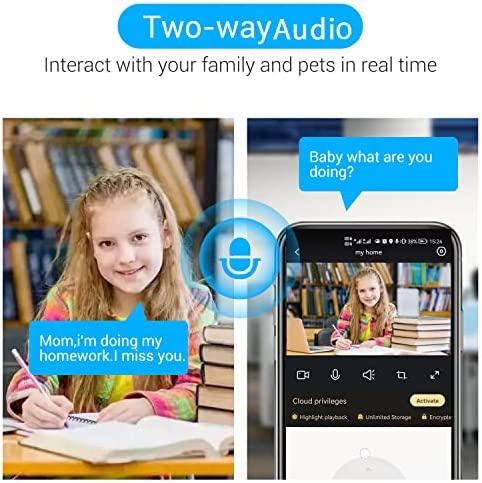 【Motion Detection and Real-time Alerts】The baby monitor indoor camera system adopts a highly sensitive motion sensor.Connect the wireless camera to WiFi,when a moving object is detected,it will record the moving picture and notify you through the APP.