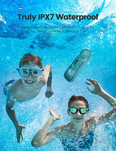 Portable Bluetooth Speaker, IPX7 Waterproof Wireless Speaker with Colorful Flashing Lights, 25W Stereo Sound with 24H Playtime, 100ft Bluetooth Range, Home, Party Speaker, TWS Pairing for Teen Gifts