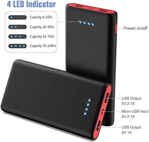 Dual USB Charging & Fast Recharge — The Dual USB ports (2.1A+1A) to charge your two devices simultaneously, Fully recharges itself in 8~12 hours with 2.1A input charger, or 12-24 hours with 1A charger;