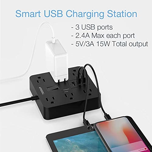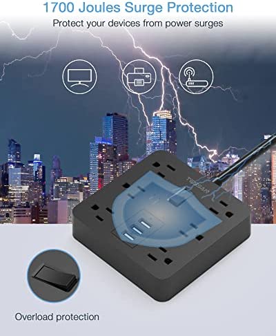 Be the first to review “Power Strip with USB, TESSAN Desktop 5 Ft Extension Cord Flat Plug with 6 Widely Spaced Outlets, Built-in 1700J Surge Protector for Home and Office Accessories, Black”