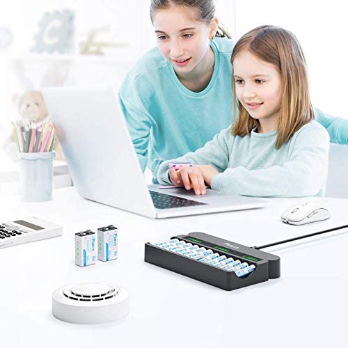 ๐ Upgraded Multi-function Charging: Independent 12 charging channel, freely charge 1-12 pieces Ni-MH Ni-CD AA AAA rechargeable batteries and 1-2 pieces Ni-MH Ni-CD 9V rechargeable batteries.