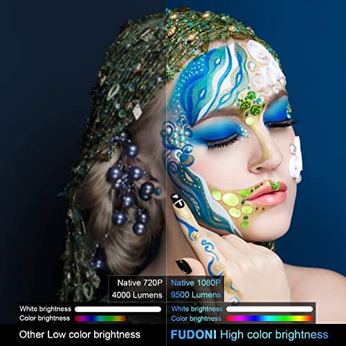 Projector, with 5G WiFi and Bluetooth Native 1080P 9500L 4K Supported, FUDONI Portable Outdoor Projector with Screen, Video Home Theater Projector for HDMI, USB, VGA, PC, TV Box, iOS & Android Phone