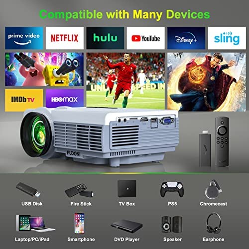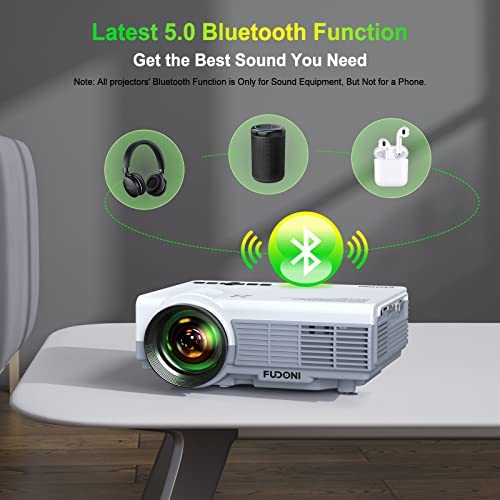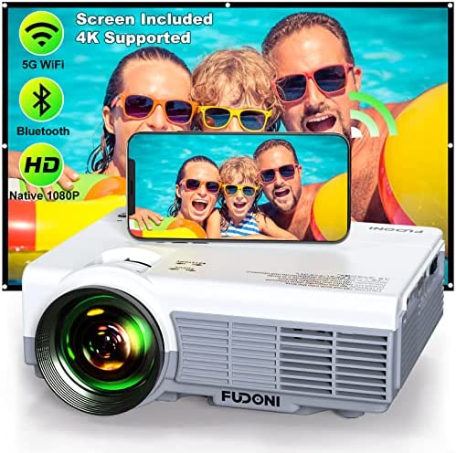 Projector with WiFi and Bluetooth, 2022 Upgraded 5G WiFi Projector Native 1080P HD 4K Supported, FUDONI Outdoor Projector with Screen, Portable Home Projector for HDMI, USB, Laptop, TV Stick, Phone