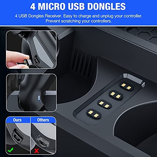 【 Fast Dual Controller Charger with LED indicator 】 The dual charging station of ps4 stand can charge 2 ps4 controllers simultaneously in 2.5-4 hours. Red light: charging ; Green light: fully charged, and the 2 led lights clearly indicate the charging status of each controller. The built-in chip of the charging station protects the controllers from overcharging/overcurrent/overheating/short circuit.