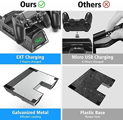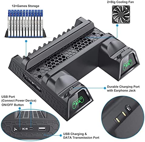 Multi-functional Design for Regular PS4/ PS4 Slim/ PS4 Pro Console: Cooling & storage your Playstation 4 console, with dual controller charger station and 12 game slots.