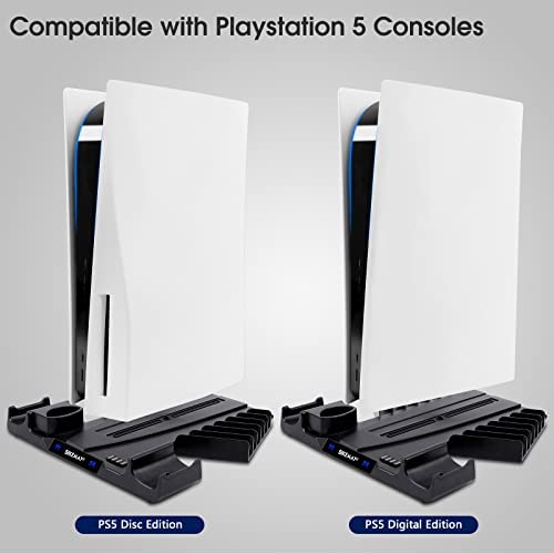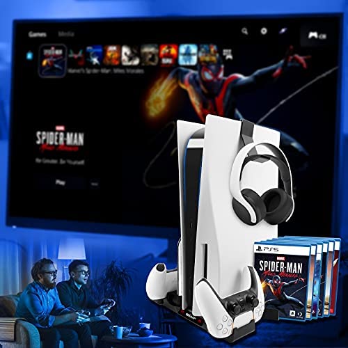 đ ăDesigned For PS5 & Safe Chargingă Compatible with Playstation 5 Dualsense controller, Digital and Disc Edition console, PS5 fan cooling fan has premium intelligent chip to ensure safe charging. With a sleek and tidy design, this PS5 stand with cooling fan and controller charger keep and organize your PS5 accessories together. A must have Playstation 5 accesories for you!