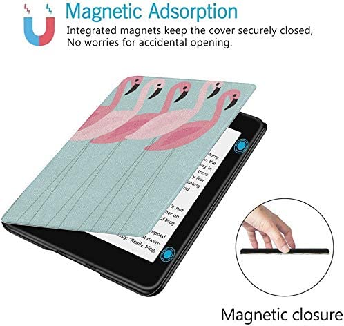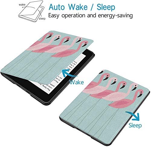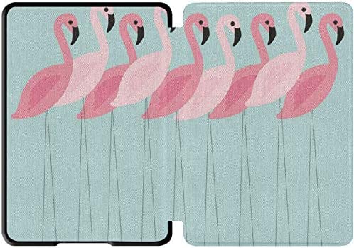 QIYI Cover Fits All-New Kindle Paperwhite Water-Safe Fabric 10th Gen 2018 Leather Cases Kids Accessories Ereader Protective Sleeves Shock Absorption – Flamingos in Line