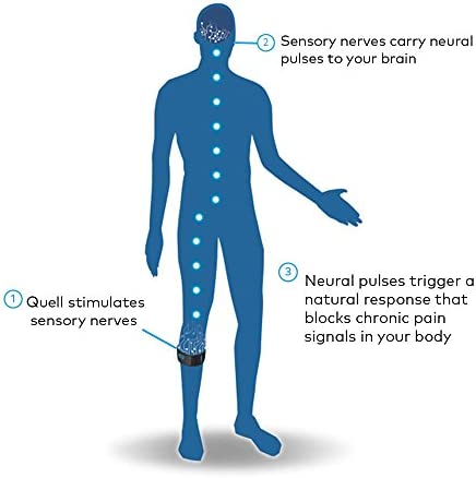 Quell is a wearable technology that uses prescription strength nerve stimulation to provide relief from chronic pain. Quell is drug free and for use during the day while active and at night while sleeping. Quell taps into your body’s natural pain relief response, blocking pain signals to deliver pain relief. The free Quell app will further enhance your Quell experience, allowing you to customize therapy, adjust therapy intensity, and track activity, pain and sleep from the app. Quell is designed to treat Chronic pain. Commit to using Quell daily for the first 30 days to reclaim your life from chronic pain. Each Quell Starter kit includes: 1 Quell device, 1 wearable band, 1 month supply of electrodes (2 electrodes) and 1 device charger. Let us help: contact Quell customer care team for questions or to troubleshoot issues, using the contact details supplied on your Quell box.