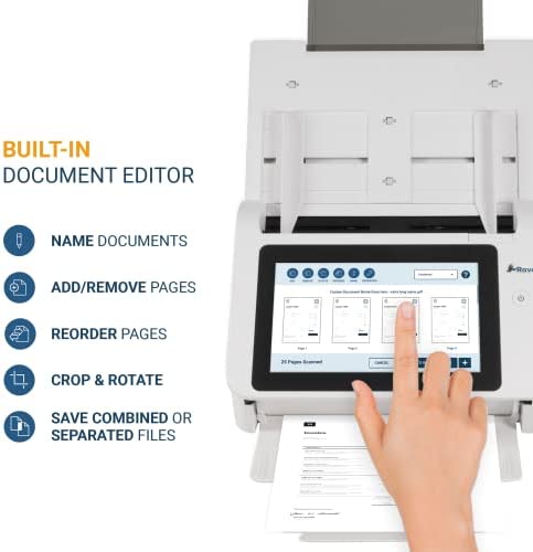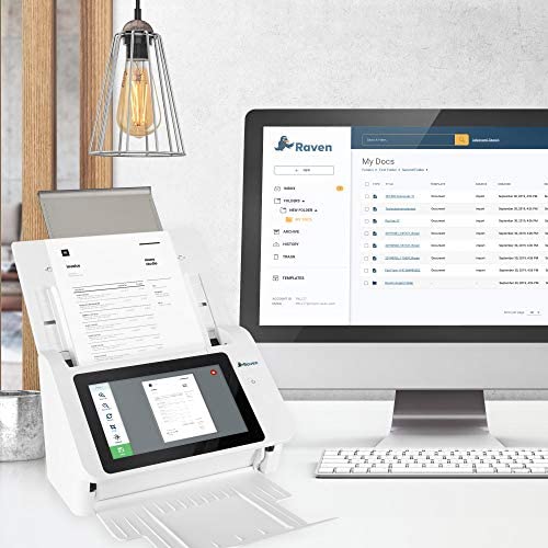 Raven Original Document Scanner – Huge Touchscreen, Color Duplex Feeder (ADF), Wireless Scanning to Cloud, WiFi, Ethernet, USB, Home or Office Desktop (2nd Gen)