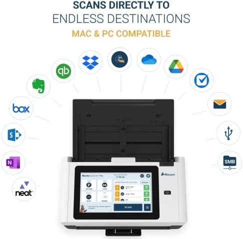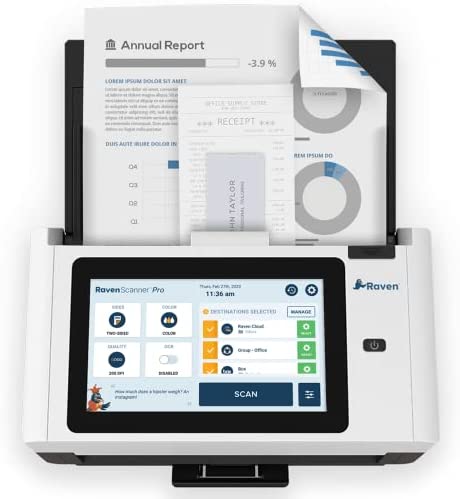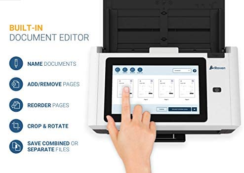 Raven Pro Document Scanner – Huge Touchscreen, High Speed Color Duplex Feeder (ADF), Wireless Scan to Cloud, WiFi, Ethernet, USB, Home or Office Desktop