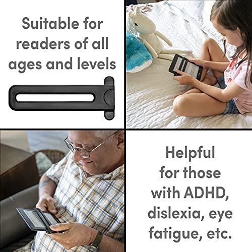 Make reading enjoyable and relaxing again with our proprietary reading guide strip for Kindles. Designed for anyone who reads with a Kindle or Kindle Paperwhite, this reading ruler is specifically designed for adults and seniors who love to read, but find the process tiring because of eye strain or have a hard time staying focused on the right line. Made with premium quality plastic with an ergonomic handle and comfortably-sized book line guide, you will find yourself taking it with you everywhere. Our reading tool for Kindle will help: – Improve reading skill by enhancing your focus on the line you are reading – Increase comprehension and reading speed – Reduce line and word skipping – Reduce page distractions – Reduce eye strain and fatigue – Reduce inchpattern glareinch, when words appear to inchmove on the pageinch – Shown to be a powerful reading tool for struggling readers – Suitable for readers of all ages and levels – Is based on research for reading aids To use the reading aid with your Kindle, simply place the device on the edge of the e-reader, aligning the reading ruler slot on your text line. Then, as you read, slide the reading strip down the side of the Kindle. It is that easy. The reading guide strip makes an excellent gift for readers of all ages, and has been specially designed for adult readers and seniors. It makes an excellent gift for a parent, grandparent, or elderly friend who loves to read their Kindle, but struggles with the effects of deteriorating eyesight or comprehension, or may struggle with reading on a screen
