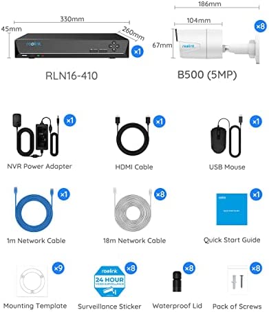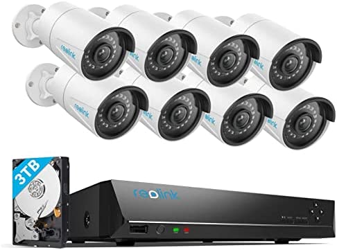REOLINK 16CH 5MP Home Security Camera System, 8pcs Wired 5MP Outdoor PoE IP Cameras with Person Vehicle Detection, 4K 16CH NVR with 3TB HDD for 24-7 Recording, RLK16-410B8-5MP
