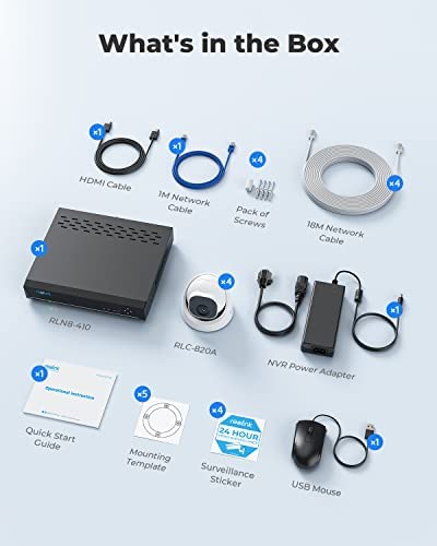 REOLINK 4K Security Camera System, 4pcs H.265 PoE Wired Turret 4K Cameras with Person Vehicle Detection, 4K/8MP 8CH NVR with 2TB HDD for 24-7 Recording, RLK8-820D4-A