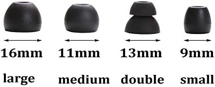 Replacement ear tips size: 4 types of eartips, small (9mm), medium (11 mm), large (13 mm) and double flange (13 mm), can meet your different needs