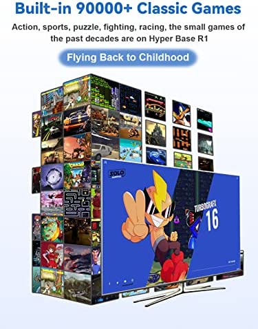 Retro Games Console Built in 90,000+ 80’s-90’s Games, Classic Video Game Console, Hyper Base R1 Emulator Console Game System, 70+ Emulators, 2 Wired Controllers, S905X3 Chip