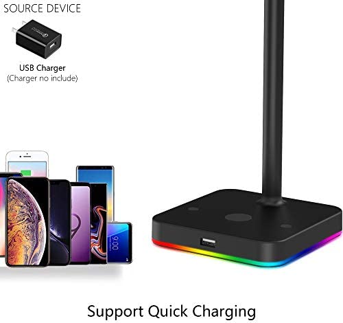 RGB Headphone Stand with USB Hub KAFRI Desk Gaming Headset Holder Hanger Rack with 1 USB2.0 Extension Charging Port Extender Cord – Suitable for Gamer Desktop Table Game Earphone Accessories