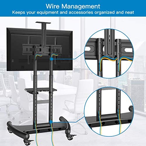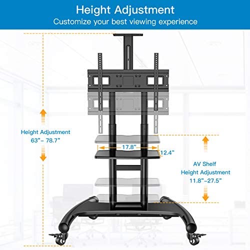 Rolling/Mobile TV Cart with Wheels for 32-75 Inch LCD LED 4K Flat Screen TVs – UL Certificated TV Floor Stand with Shelf Holds Up to 100 lbs, Height Adjustable Trolley Max VESA 600x400mm- PSTVMC05