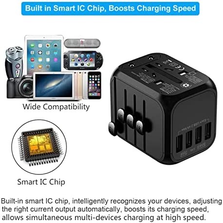 [ Built in Intelligent Chip, Support Fast Charging ]: The Smart Chip can Auto-detect your devices and distribute maximum current/voltage output intelligently, boosts charging speed and save energy, 4 USB ports + 1 universal socket wall charger, allows simultaneous multiple devices charging such as phones, tablets or laptops, intelligent distribution, lightning protection, overload protection, overcharge protection,overheat protection, etc.