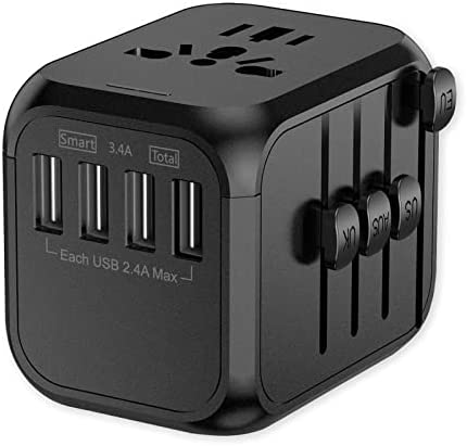 SAUNORCH Travel Adapter Accessories,Universal International Power Adapter W/ 3.4A 4XUSB Wall Charger, European Plug Adapter Converter for Europe UK EU US CA AU Italy Asia