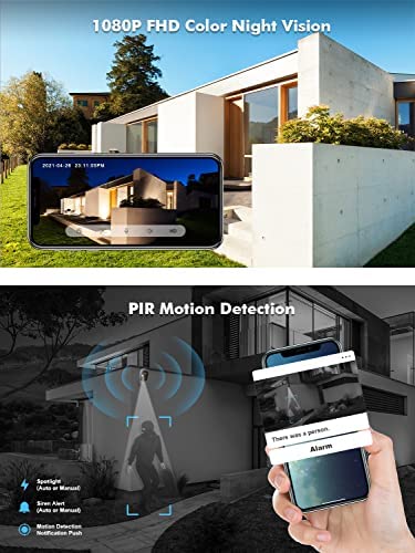 Security Cameras Wireless Outdoor – Spotlight & Siren, Dzees 1080P Battery Powered WiFi Cameras for Home Security, AI Motion Detection, Color Night Vision, 2-Way Talk, Waterproof, SD/Cloud