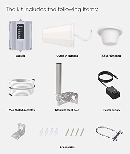 【MULTI-USER AND MULTI-DEVICE 】The SolidRF signal booster for home office, More suitable for multi-user and multi-device application scenes, give your 5G phone, tablet, data card, and notebooks boosted speeds all at the same time. Automatically adjust the system gain and power level to get the optimum result.It will boost voice and 4G LTE data signals on 5G phones and devices.Maximum Gain:65 dB.With an adjustable outdoor antenna mounting pole, avoid the trouble of additional purchases.