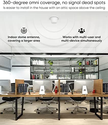 【MORE SUITABLE FOR OPEN SPACE 】SolidRF phone signal boosters with the omni indoor dome antenna, and the signal is evenly distributed in the direction of 360 degrees,reducing coverage blind spots and covering a wider area. Is easier to install in the house with an attic space above the ceiling.It can hide the wiring cable in the indoor ceiling, and keep the room neat and nice. Perfect for lofts, offices, factories, warehouses.