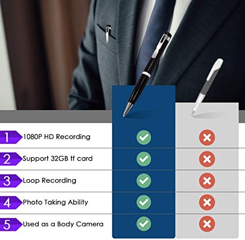 Spy Pen Camera, HD 1080P Hidden Camera Portable Digital Video Recorder, Mini Body Camera with Loop Recording Wireless Security Nanny Pen Comcorder for Business and Conference