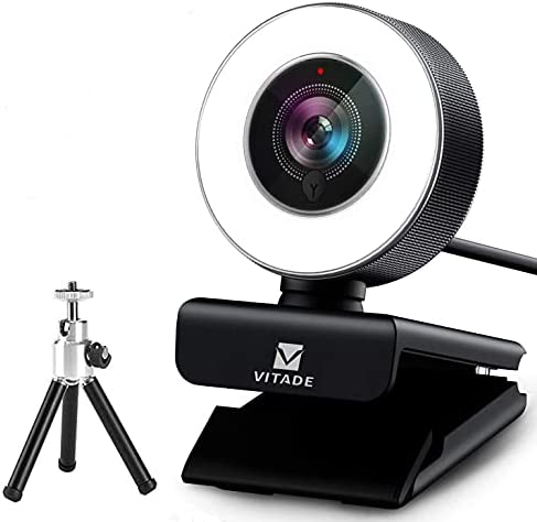 Streaming Webcam 1080P with Adjustable Ring Light, Advanced Auto-Focus with Tripod Vitade 960A HD USB Web Cam for Xbox Gaming Conferencing Video Chatting Mac Desktop Computer Laptop Wide Angle Webcam