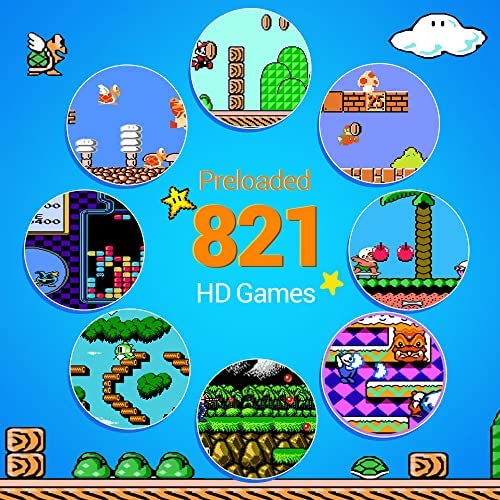 Super Retro Game Console Classic Mini HDMI System with Built in 821 Old School Video Games, Preloaded Entertainment Gaming System, Plug and Play