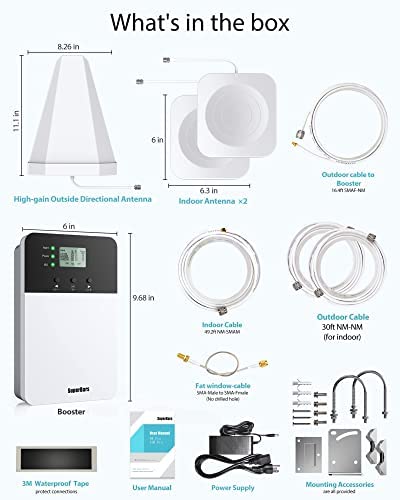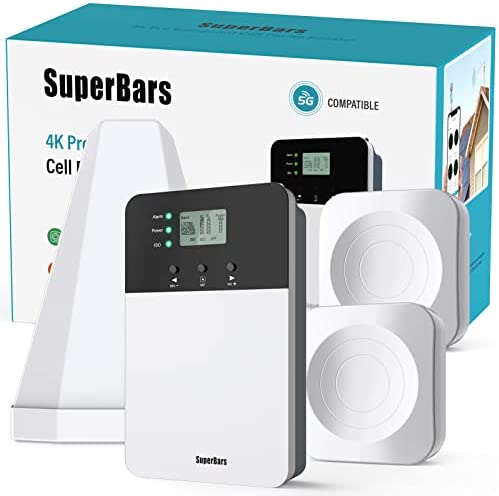 SuperBars Cell Phone Booster, Up to 6,000 sq ft for Home MultiRoom, 2 Indoor Antennas Cell Phone Signal Booster Kit for All U.S.Carriers – Verizon AT&T Sprint T-Mobile, Boosts 4G LTE&5G, FCC Approved
