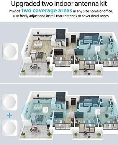 đ ăTwo Indoor Antenna KitsăDesigned for multiple rooms(such as 2~3 large rooms or 2 seperate floors), covering up to 6000 square feet(Depending on the strength of the outdoor signal), works well in apartments, homes, basements, offices, cabin, loft, cottages, campsites, etc. No splitter hassle, each Coverage for 1 to 2 rooms.