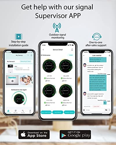 đ ăSmart APP Signal DetectionăSuperBars cell Phone booster equipped with unique signal supervisor APP and LCD screen to help you install. LCD Visualization design can Help you monitor this signal amplifier. APP have the function of signal detection, remotely guide of installation, On and Off and Alarm Reminder,Online Problem Support. And lifetime technical support will be provided through the APP.