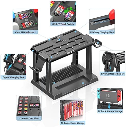 Switch Games Organizer Station with Controller Charger, Charging Dock for Nintendo Switch & OLED Joycons, Kytok Switch Storage and Organizer for Games, TV Dock, Pro Controller, Accessories Kit Storage